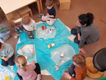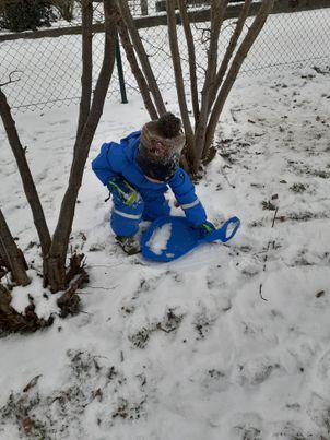Die Kinder des Zwergengarten Meiningen erlebten in den vergangenen zwei Wochen etwas ganz Besonderes: den ersten ausgiebigen Schnee in diesem Jahr. Deshalb drehte sich in unserem Betreuungsalltag alles rund um das Thema Schnee: Die Kinder konnten mit Schnee im Gruppenraum experimentieren, draußen Gegenstände unter dem Schnee verstecken, rodeln, einen Schneemann bauen, durch den Schnee stapfen oder den Schnee einfärben.