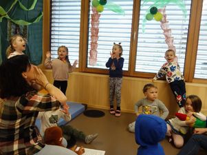 Unser Kreativraum hat sich während dieser Projektzeit in eine fantasievolle Dschungellandschaft verwandelt, die zum Mitmachen und Entdecken einlädt. An verschiedenen Stationen tauchen die Kinder in unterschiedliche Gefühlswelten ein: